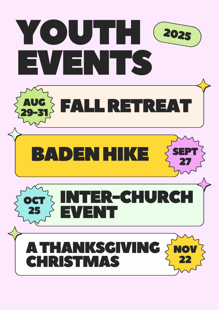 Youth Group meets every Sunday at 10:30 in the Kantonschule building.