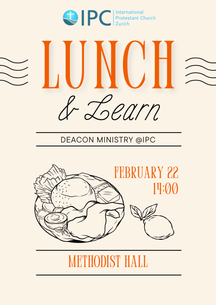 Join us for a Lunch & Learn in which we will explore and apply biblical principles related to the ministry of deacons. Pastor Mark and Dorli Scherer, our new Head Deacon, will talk about the role of deacons in the New Testament church as it relates to the role of deacons at IPC, with the goal of helping us discern God’s will for us in this important ministry of the church.